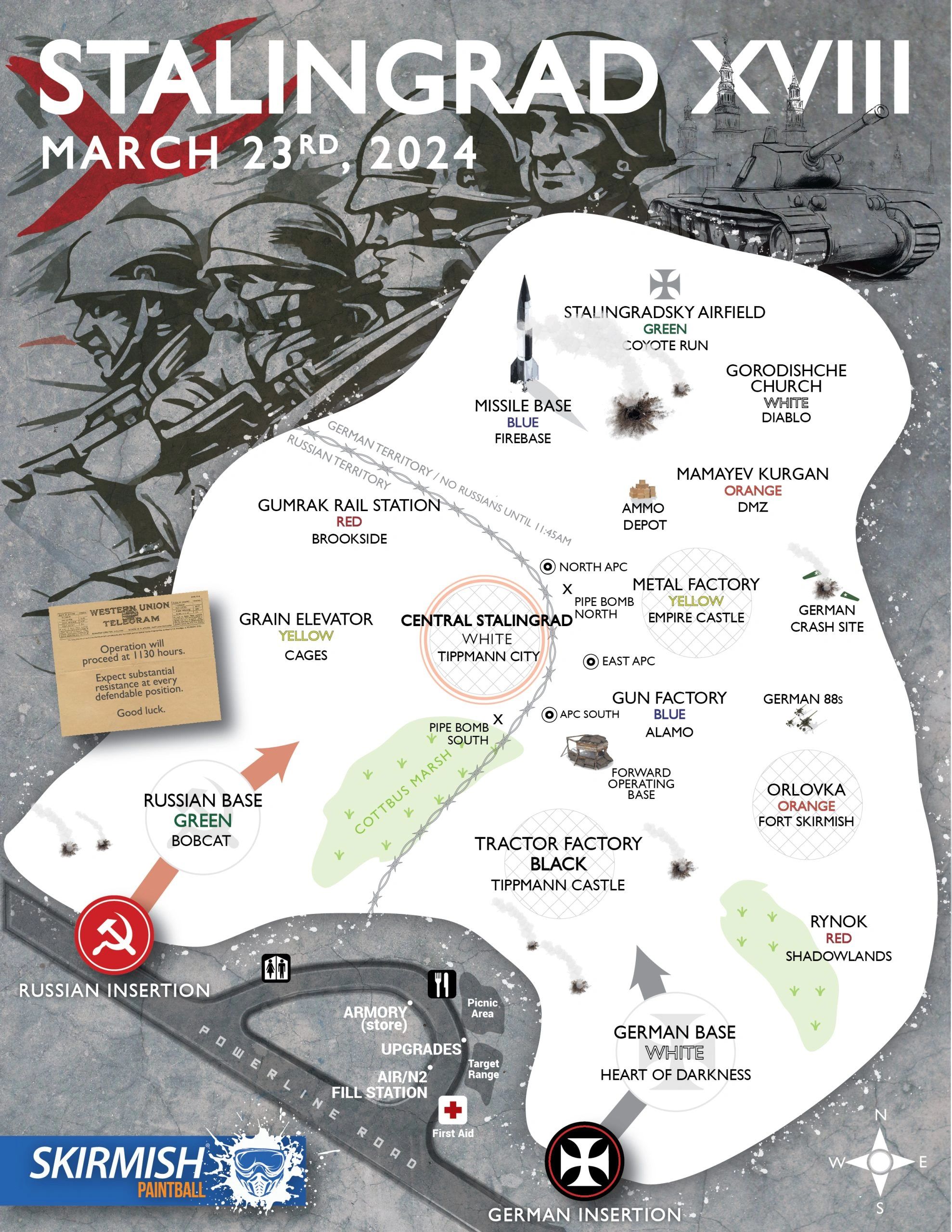 We may enter the field at 11:00 AM Saturday morning. Chrono then we are masks up and BARREL SOCKS ON until 11:30 for game on.